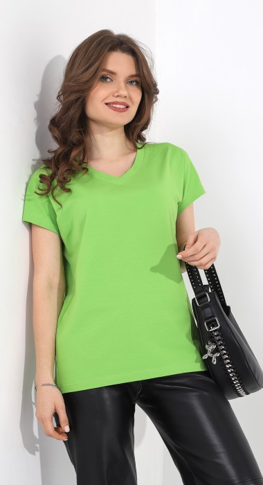 Футболка женская из трикотажного гладкокрашеного полотна «кулирка» с лайкрой, классического покроя, с короткими втачными рукавами и горловиной овальной формы, обработанной втачной планкой.