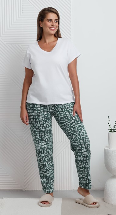 Брюки женские из трикотажного полотна «кулирка» с набивным рисунком, классического кроя, длинные, с карманами в боковых швах, на притачном поясе с эластичной тесьмой внутри.