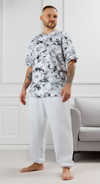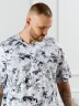 Футболка из полотна с набивным рисунком эксклюзивного дизайна. Модель свободная, со спущенной линией плеч, овальным вырезом горловины.