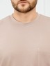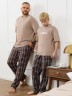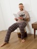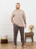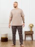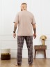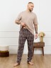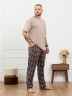 Костюм мужской из трикотажного полотна "кулирка", состоящий из футболки и брюк. Футболка классического покроя, с короткими втачными рукавами и приспущенной линией плеч, горловиной овальной формы, обработанной втачной планкой и нагрудным накладным карманом на детали переда. Нижние срезы рукавов и изделия обработаны подгибкой. По горловине настрочена отделочная строчка. Брюки - длинные, на притачном поясе с эластичной тесьмой внутри, с карманами в боковых швах. Нижние срезы обработаны подгибкой.