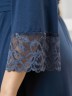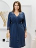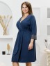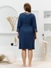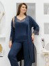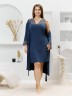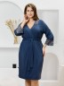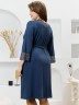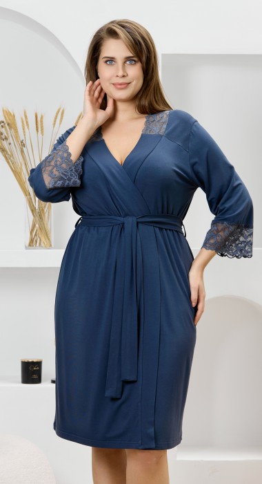 Халат из гладкокрашеного трикотажного вискозного полотна, на запахе, с втачными рукавами 3/4 длины, кружевными манжетами, притачной планкой по бортовым срезам и съемным поясом, продетым через две шлевки в боковых швах. Спинка с кружевной притачной кокеткой - V-образной формы, бортовая планка с кружевными вставками, переходящими на полочку.