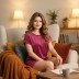 Шорты -средней длины, расширенные книзу, с эластичной тесьмой по талии.