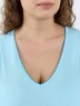 Сорочка женская из гладкокрашенного трикотажного полотна «кулирка», слегка расширенная книзу, без рукавов, с горловиной V-образной формы, окантованной основным материалом. Проймы и горловина обработаны декоративной строчкой «кроше».