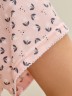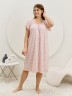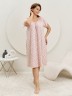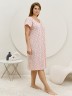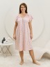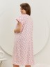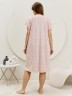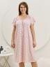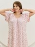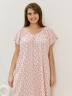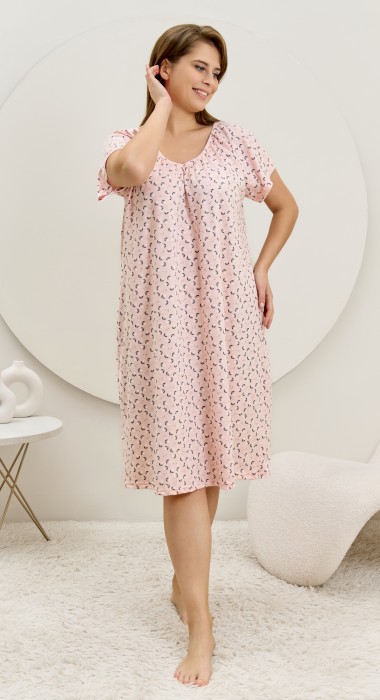 Сорочка женская из трикотажного полотна «кулирка» с набивным рисунком свободного покроя, с короткими втачными рукавами покроя «реглан». Углубленная горловина V- образной формы, собрана по краю на сборку и окантована основным материалом. Низ изделия и нижние срезы рукавов обработаны узким обметочным швом нитками в тон изделия.