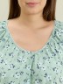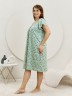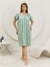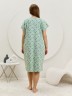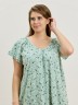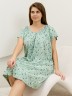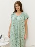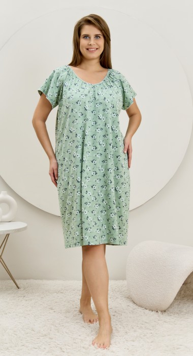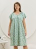 Сорочка женская из трикотажного полотна «кулирка» с набивным рисунком свободного покроя, с короткими втачными рукавами покроя «реглан». Углубленная горловина V- образной формы, собрана по краю на сборку и окантована основным материалом. Низ изделия и нижние срезы рукавов обработаны узким обметочным швом нитками в тон изделия.
