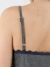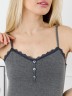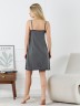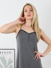 Сорочка молодежная из трикотажного гладкокрашенного полотна «кулирка меланж», слегка расширенная книзу, на узких бретелях, вытачанных из окантовки. Для регулирования длины бретелей предусмотрены пластмассовые кольца-держатели и фиксаторы. По центру переда застрочен «защип» и пришиты три декоративные пуговицы имитирующие застежку. Вырез горловины переда, спинки, низ изделия отделаны кружевом.