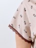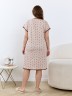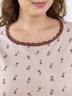 Сорочка женская из трикотажного полотна «кулирка» с набивным рисунком, свободного покроя, с цельнокроеными рукавами и овальным вырезом горловины. Нижние срезы рукавов, горловина, низ изделия отделаны узким кружевом контрастного цвета.
