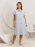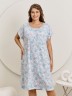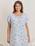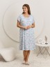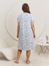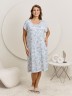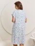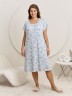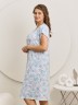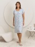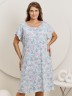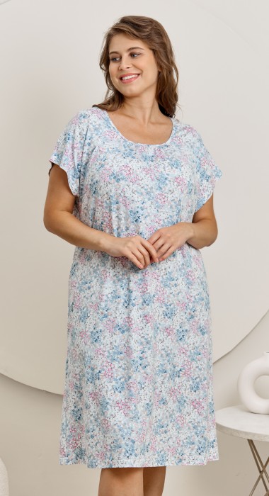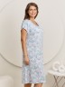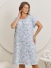 Сорочка женская из вискозного трикотажного плотна с набивным рисунком, свободного покроя, расширенная книзу, с короткими цельнокроеными рукавами и горловиной овальной формы, окантованными основным материалом. По центру горловины переда выполнена сборка.