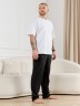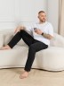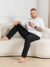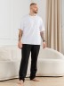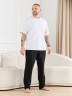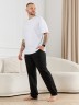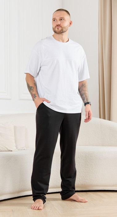 Брюки мужские из гладкокрашенго трикотажного полотна "футер 2-нитка", свободного покроя, на притачном поясе с эластичной тесьмой внутри, с карманами в боковых швах. Нижние срезы обработаны подгибкой.