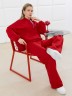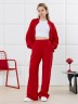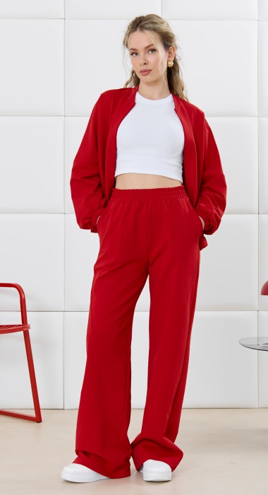 Брюки молодежные из трикотажного гладкокрашенного полотна «футер», длинные, на притачном поясе с эластичной тесьмой внутри, с карманами в боковых швах. Правая и левая половины брюк состоят из трех частей, скроенных по косой, с отделочными строчками по шву стачивания.
