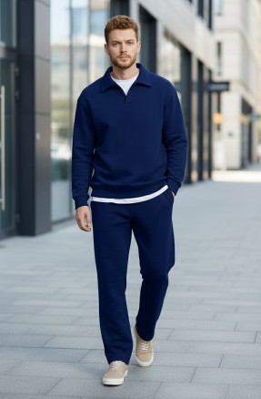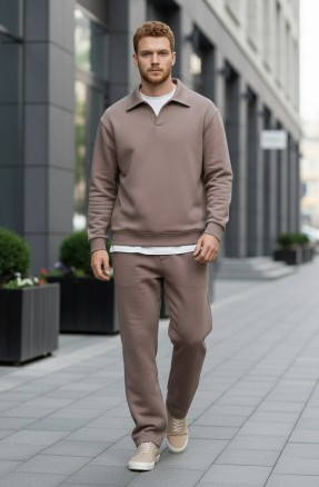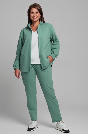 Брюки женские из трикотажного полотна "футер-двунитка", на притачном поясе с эластичной тесьмой внутри, с карманами в боковых швах и отделочными деталями фигурной формы на передних половинах. Нижние срезы брюк обработаны с эластичной тесьмой. По швам притачивания отделочных деталей, декоративных вставок и карманам настрочены отделочные строчки. На левой передней половине брюк ниже кармана настрочен декоративный элемент прямоугольной формы. Через две петли в центре пояса петли продет шнурок, позволяющий регулировать степень прилегания изделия по талии.