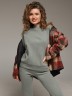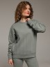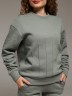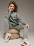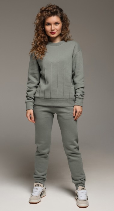Костюм молодежный из гладкокрашеного трикотажного полотна «футер- трехнитка», состоящий из джемпера и брюк овальной формы, обработанной втачной планкой и притачным поясом по низу. Рукава – с притачными манжетами. Манжеты, планка горловины и пояс выполнены из полотна «кашкорсе» такого же цвета, как и основной материал. На полочке застрочены декоративные складочки-защипы, расположенные симметрично относительно линии центра. Брюки – длинные, на притачном поясе с эластичной тесьмой внутри и манжетами по низу. Передние половины – из двух частей каждая, со смещением соединтельных швов в сторону боковых срезов. Соединительные швы передних половин обработаны с карманами. Пояс и манжеты выполнены из трикотажного полотна «кашкорсе».