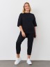 Брюки – укороченные, на притачном поясе с эластичной тесьмой внутри и карманами в боковых швах. На нижних частях передних и задних половин обработаны по две вертикальные вытачки.