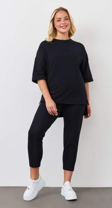 Костюм из гладкокрашеного трикотажного полотна «футер-двунитка», состоящий из джемпера и брюк.