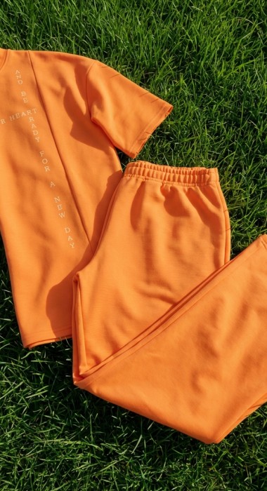 Костюм молодежный из гладкокрашеного трикотажного полотна «футер-двунитка», состоящий из футболки и брюк-кюлотов.