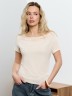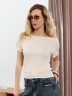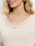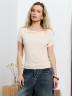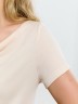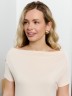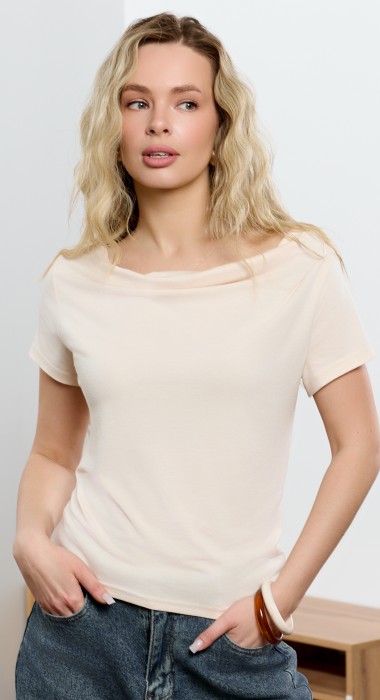 Блузка женская из гладкокрашеного вискозного полотна, полуприталенного силуэта, с короткими втачными рукавами. Акцентом блузки является горловина полочки с драпировкой «качели», создающей небольшой объем, горловина спинки окантована основным материалом.