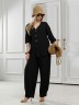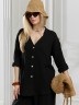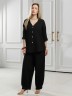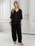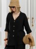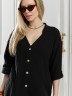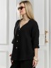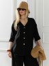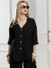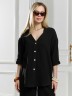 Блузка женская из фактурного гладкокрашеного полотна, с втачными рукавами длиной 3/4, с центральной бортовой застежкой на 4 обметанные петли и 4 пуговицы, с горловиной фигурной формы и небольшим отделочным воротником. Нижние срезы рукавов и низ изделия обработаны подгибкой. Рукава - с хлястиками, с петлей и пуговицей, позволяющими регулировать длину рукавов на фигуре и создающими красивую драпировку.