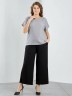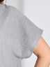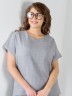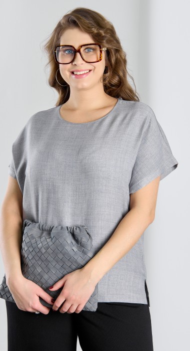 Блуза женская из гладкокрашеного тканого полотна, прямого силуэта, с горловиной овальной формы и цельнокроеными рукавами. Горловина окантована основным материалом, в боковых швах небольшие разрезы.