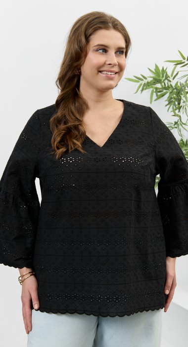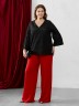 Блузка женская из тканого гладкокрашеного полотна «шитье» прямого силуэта, с V- образной горловиной, внутренней обтачкой, длинными втачными рукавами, слегка расширенными книзу, присборенными на уровне локтевого сгиба. Нижние срезы