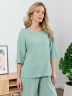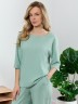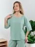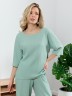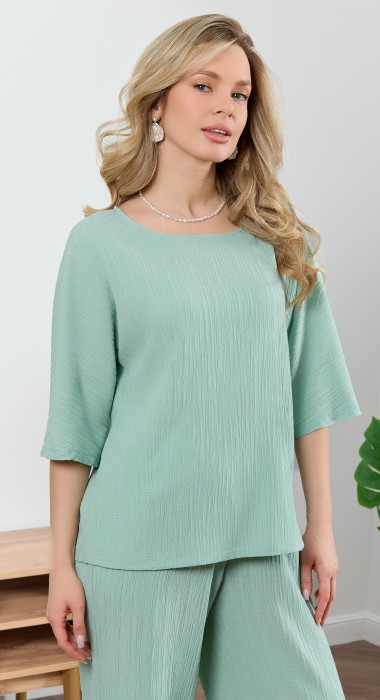 Блуза женская из гладкокрашеного тканого полотна, прямого силуэта, с горловиной овальной формы и цельнокроеными рукавами длиной до локтя. Горловина окантована основным материалом.При выборе изделия в белом цвете идеальным решением будет выбор белья нейтральных