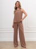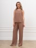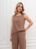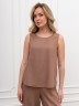 Блузка-топ женская из гладкокрашеного тканого полотна, полуприталенного силуэта, без рукавов, с горловиной овальной формы. Горловина и проймы окантованы основным материалом.