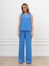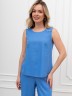 Блузка-топ женская из гладкокрашеного тканого полотна, полуприталенного силуэта, без рукавов, с горловиной овальной формы. Горловина и проймы окантованы основным материалом.