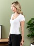 Футболка – из гладкокрашеного трикотажного полотна с рельефной структурой (лапша), прилегающего силуэта, с короткими втачными рукавами, горловиной V-образной формы, окантованной основным материалом.При выборе изделия в белом цвете идеальным решением будет выбор белья нейтральных