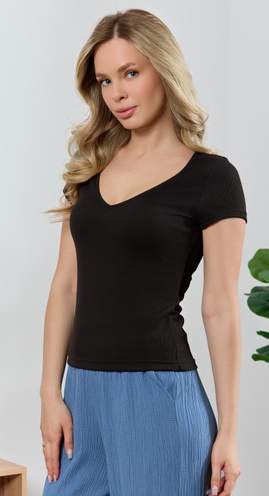 Футболка – из гладкокрашеного трикотажного полотна с рельефной структурой (лапша), прилегающего силуэта, с короткими втачными рукавами, горловиной V-образной формы, окантованной основным материалом.При выборе изделия в белом цвете идеальным решением будет выбор белья нейтральных