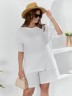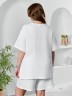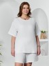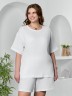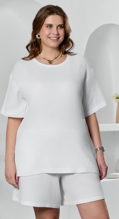 Блуза женская из гладкокрашеного тканого полотна «муслин», прямого силуэта, с горловиной овальной формы и короткими втачными рукавами. Горловина обработана втачной планкой, в боковых швах разрезы.