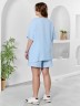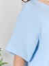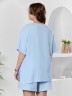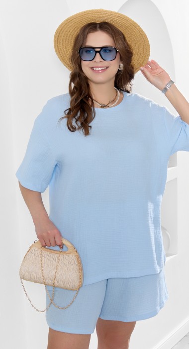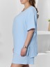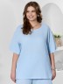 Блуза женская из гладкокрашеного тканого полотна «муслин», прямого силуэта, с горловиной овальной формы и короткими втачными рукавами. Горловина обработана втачной планкой, в боковых швах разрезы.