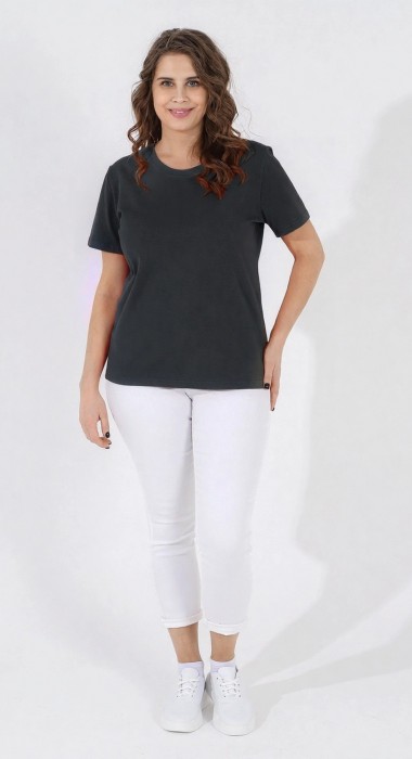 Футболка женская из трикотажного гладкокрашеного полотна «кулирка» с лайкрой, классического покроя, с короткими втачными рукавами и горловиной овальной формы, обработанной втачной планкой.