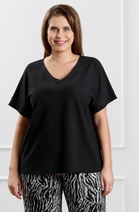 Футболка из гладкокрашеного трикотажного полотна «кулирка с лайкрой» классического покроя, с короткими втачными рукавами, горловиной V-образной формы, обработанной втачной планкой и принтом на полочке.