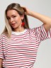 Футболка молодежная из трикотажного полотна "кулирка" с лайкрой с набивным рисунком "полоса", классического покроя, с короткими втачными рукавами и горловиной овальной формы, обработанной втачной планкой из контрастного трикотажного полотна «рибана».