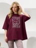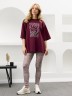 Футболка молодежная из гладкокрашенного трикотажного полотна «кулирка» с лайкрой, свободная покроя «оверсайз», с горловиной овальной формы, обработанной притачной планкой, рукавами длиной до локтя. На полочке выполнена печать в технике «шелкографии».
