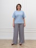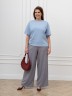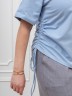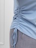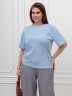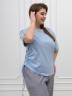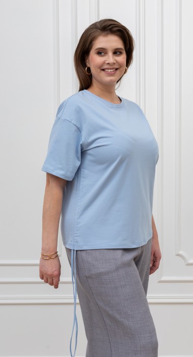 Футболка женская из гладкокрашеного трикотажного полотна «кулирка с лайкрой», полуприталенного силуэта, с короткими втачными рукавами, горловиной овальной формы, обработанной втачной планкой. Модным элементом является регулируемая сборка в боковом шве, выполненная с помощью «кулисы» и продетого в нее шнура.