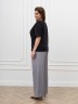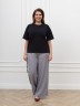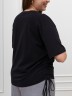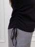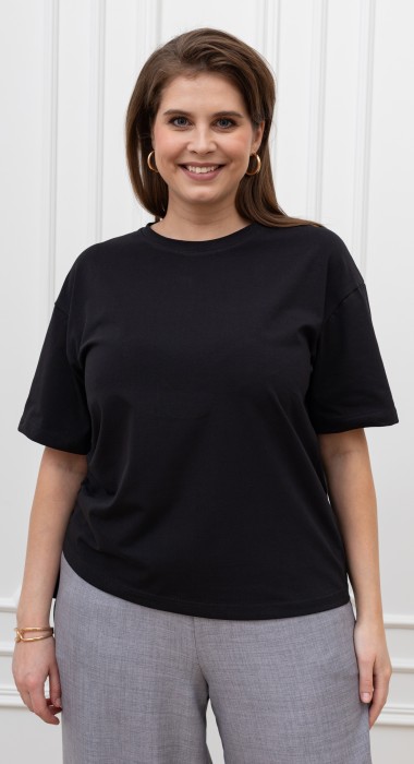 Футболка женская из гладкокрашеного трикотажного полотна «кулирка с лайкрой», полуприталенного силуэта, с короткими втачными рукавами, горловиной овальной формы, обработанной втачной планкой. Модным элементом является регулируемая сборка в боковом шве, выполненная с помощью «кулисы» и продетого в нее шнура.