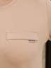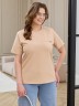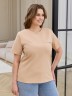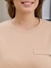 Футболка женская из гладкокрашеного трикотажного полотна «кулирка с лайкрой», прямого кроя, с короткими втачными рукавами, горловиной овальной формы, обработанной втачной планкой. На полочке настрочена планка имитирующая вход в карман с декоративной нашивкой.