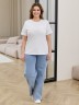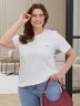 Футболка женская из гладкокрашеного трикотажного полотна «кулирка с лайкрой», прямого кроя, с короткими втачными рукавами, горловиной овальной формы, обработанной втачной планкой. На полочке настрочена планка имитирующая вход в карман с декоративной нашивкой.