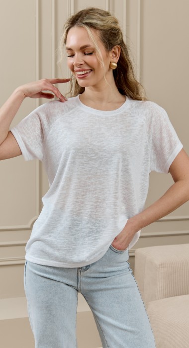 Футболка женская из гладкокрашеного трикотажного полотна «деворе», классического кроя, с горловиной овальной формы, обработанной втачной планкой, рукавами покроя «реглан».