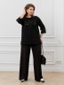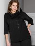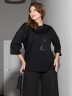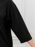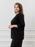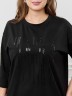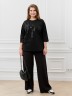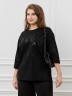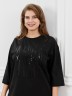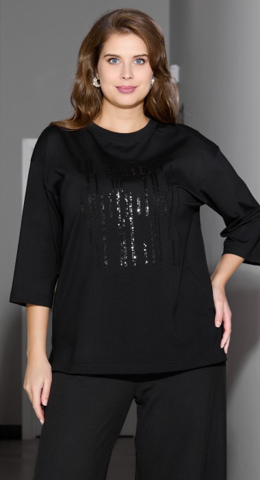 Футболка женская из гладкокрашенного трикотажного полотна «кулирка с лайкрой», свободного покроя, со спущенным плечом и втачными рукавами длиной до локтя, горловиной овальной формы, обработанной втачной планкой. По центру полочки выполнена вышивка «пайетками» в тон изделия. В нижней части боковых швов небольшие разрезы.