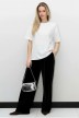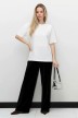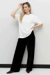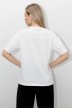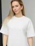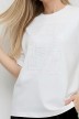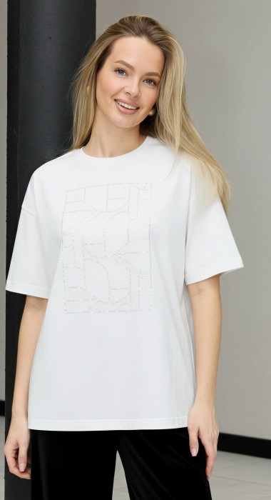 Футболка женская из гладкокрашенного трикотажного полотна «кулирка с лайкрой», свободного покроя, с короткими втачными рукавами, горловиной овальной формы, обработанной втачной планкой. По центру полочки выполнена вышивка «пайетками» в тон изделия.