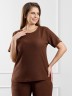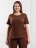 Футболка женская из гладкокрашенного трикотажного полотна «бурумчук», прямого силуэта, с короткими втачными рукавами, горловиной овальной формы, обработанной втачной планкой. По центру полочки ниже горловины - настрочен декоративный элемент-нашивка.