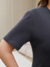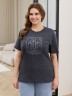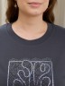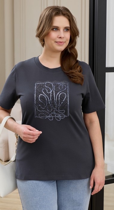 Футболка женская из гладкокрашеного трикотажного полотна «кулирка с лайкрой», полуприталенного силуэта, с горловиной овальной формы, обработанной втачной планкой и короткими рукавами. На полочке выполнена объемная вышивка «пайетками» на гипюровом кружеве в контрастных цветах.