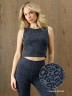 Майка молодежная из трикотажного полотна «рибана» с набивным «леопардовым» рисунком, укороченная, с горловиной овальной формы. Проймы и горловина изделия обработаны притачными планками с отделочными строчками по швам притачивания.