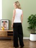 Майка-топ молодежная из гладкокрашеного трикотажного полотна с рельефной структурой (лапша), прилегающего силуэта, без рукавов, с горловиной овальной формы. Проймы и горловина изделия обработаны притачными планками с отделочными строчками по швам притачивания.При выборе изделия в белом цвете идеальным решением будет выбор белья нейтральных