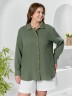 Рубашка – женская из гладкокрашеного тканого полотна «муслин», прямого силуэта, с длинными втачными рукавами на притачных манжетах, стояче-отложным воротником, фигурным низом и центральной бортовой застежкой на петли и пуговицы. Спинка – с отрезной кокеткой и бантовой складкой в центре соединительного шва.