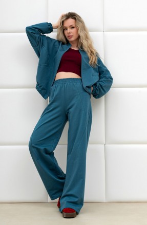 Брюки женские укороченные, на притачном поясе с эластичной тесьмой внутри и карманами в боковых швах. На нижних частях передних половин застрочены две вертикальные складочки-защипы.