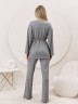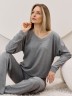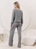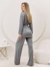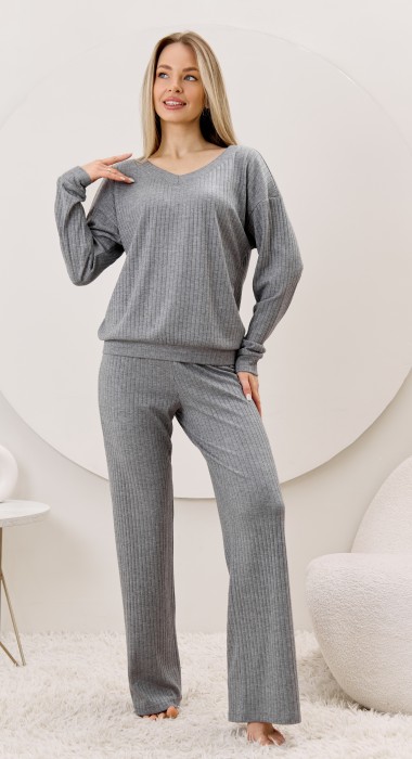 Брюки – женские из гладкокрашенного трикотажного фактурного полотна в «рубчик» с добавлением ангоры, полуприлегающего силуэта, длинные, слегка расширенные книзу, на притачном поясе с эластичной тесьмой внутри.