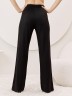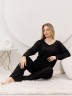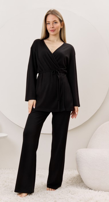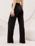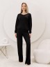 Брюки – женские из гладкокрашенного трикотажного фактурного полотна в «рубчик» с добавлением ангоры, полуприлегающего силуэта, длинные, слегка расширенные книзу, на притачном поясе с эластичной тесьмой внутри.