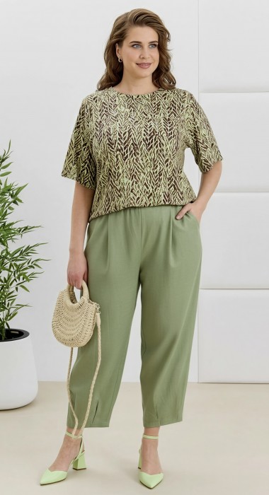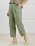 Брюки женские «бананы» из гладкокрашеной плательной ткани, стандартной длины, с заложенными складками по талии, на притачном поясе с эластичной тесьмой внутри, с карманами в боковых швах, зауженные к низу. На нижних частях передних и задних половин застрочены складки-защипы.